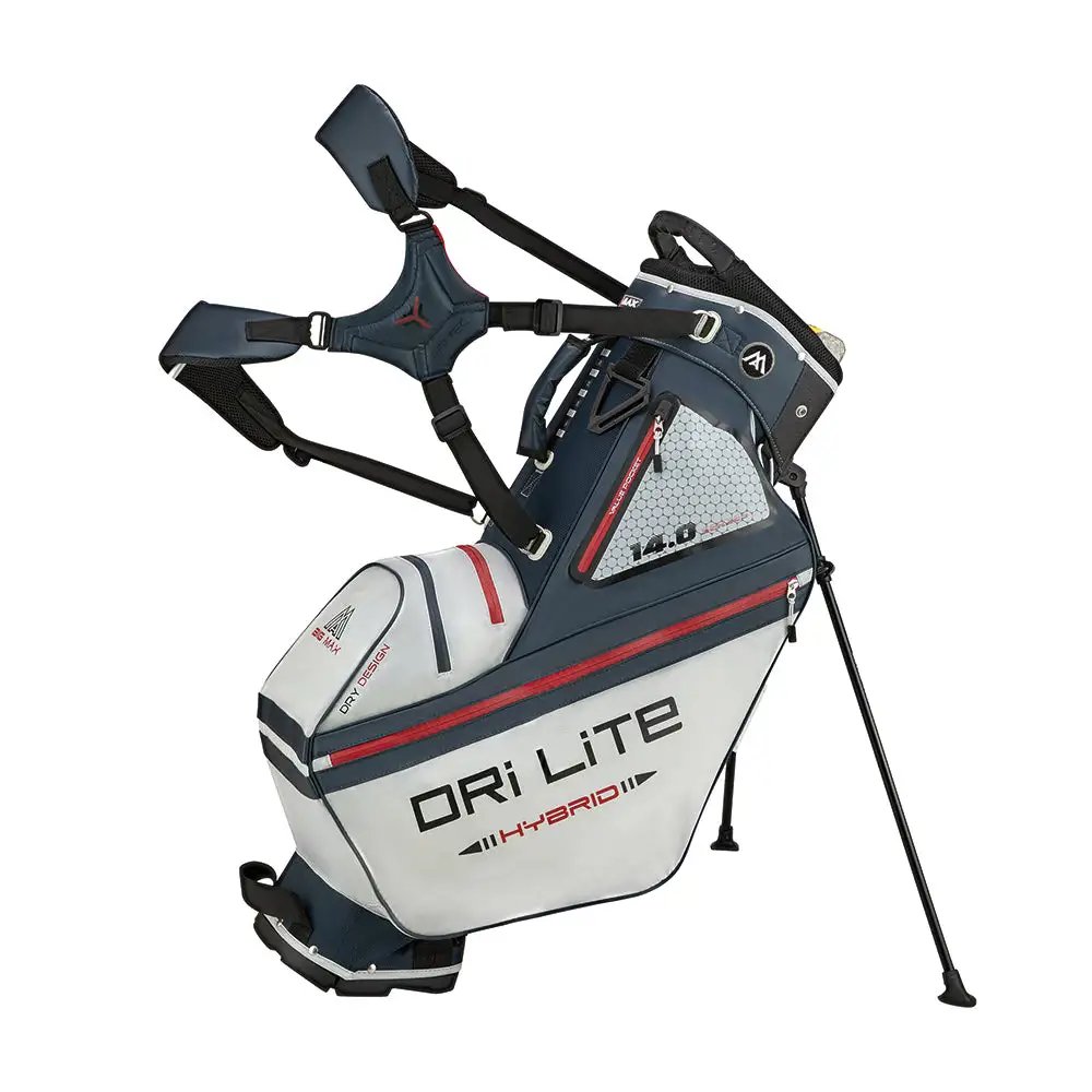 The new water repellent Dri Lite Hybrid Tour stand bag is the ultimate all-round solution for the golfer who likes to push and carry. This ingenious bag by BIG MAX sits perfectly square on a trolley thanks to its flat, footless trolley compatible base, leg lock feature and clever positioning of the stand mechanism to avoid twisting.