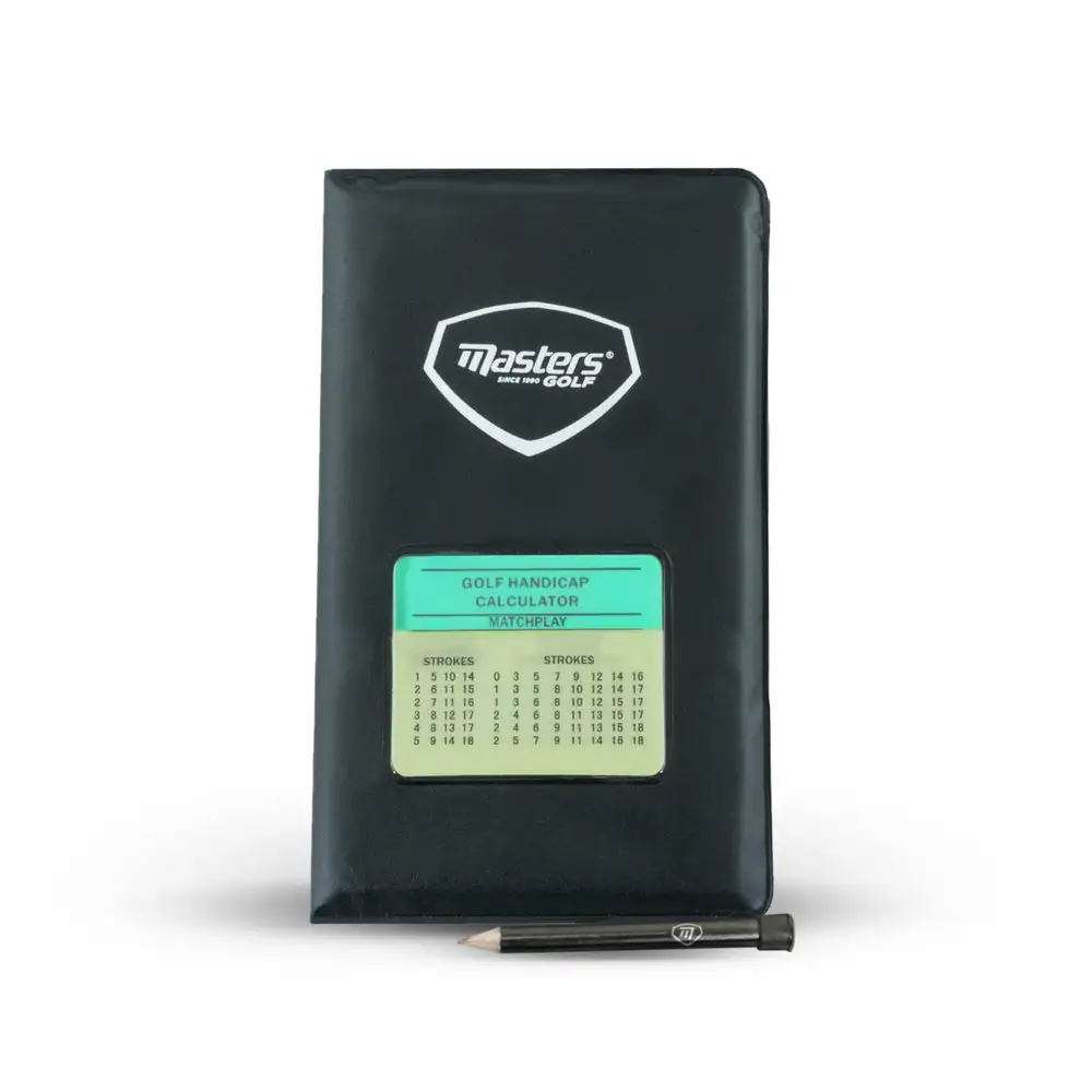 A protective case for your score card, keeping it dry and providing a firm writing surface. It features a handicap calculator, score card clip and a pencil and holds most score cards.