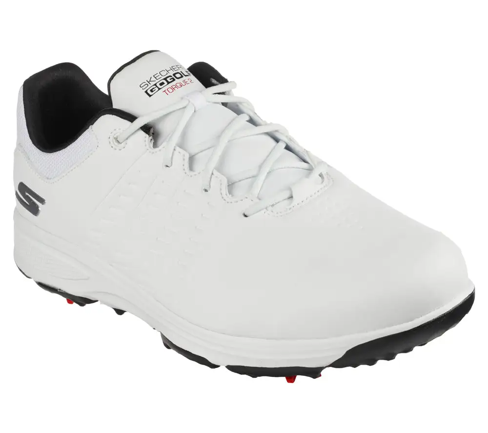 Elevated comfort is in full swing with Skechers GO GOLF Torque. This lace-up features a sleek and classic design with replaceable Softspikes®, lightweight ULTRA GO cushioning and waterproof protection. Replaceable Softspikes® for maximum grip featuring Stealth PIN system Lightweight, responsive ULTRA GO® cushionin. High-rebound Skechers Goga Max cushioned insole. Waterproof protection with one-year warrant. Ortholite comfort foam insole layer adds long-term cushioning and high-level breathability with 5% recycled rubber content. Feature packed golf shoe.